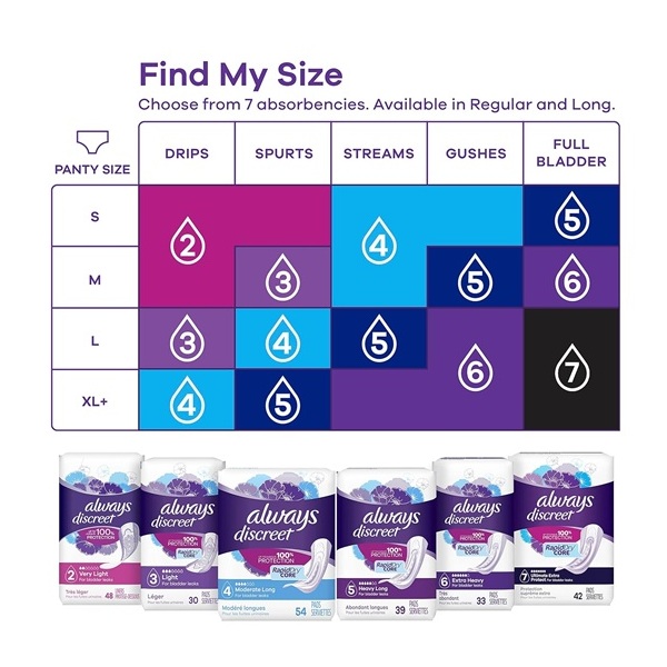 - Always Discreet Extra Heavy Incontinence Pads offer up to 100% leak-free protection