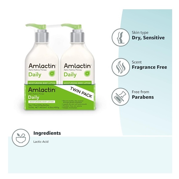 AmLactin Daily Moisturizing Body Lotion | Instantly Hydrates, Relieves Roughness | Powerful Alpha-Hydroxy Therapy Gently Exfoliates | Smooths Dry Skin | Twin Pack (2) 7.9 oz. Bottles