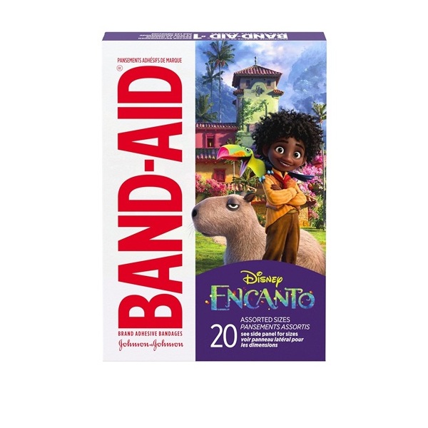 • 20-Count Box Of Decorative Encanto Band-Aid Brand Adhesive Bandages For Kids And Toddlers In Assorted Sizes To Cover And Protect Minor Cuts And Scrapes To Deliver Daily Wound Protection