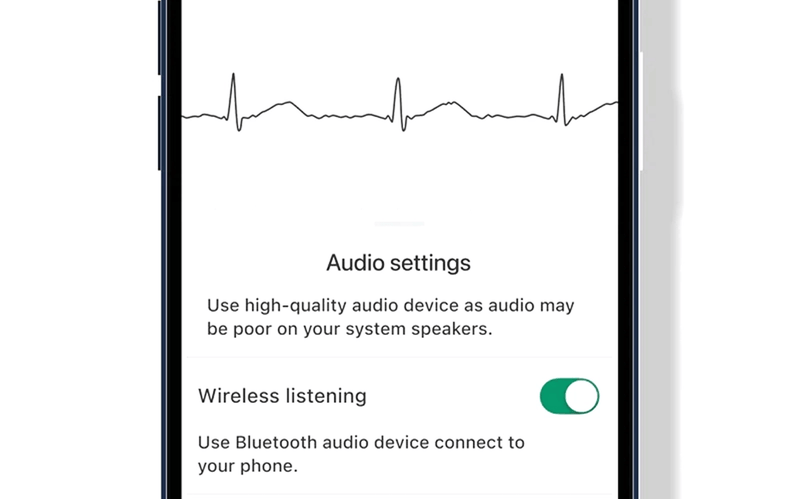 Toggle between Cardio, Pulmonary, and Wide audio filters that are optimized to pick up heart, lung, and body sounds.