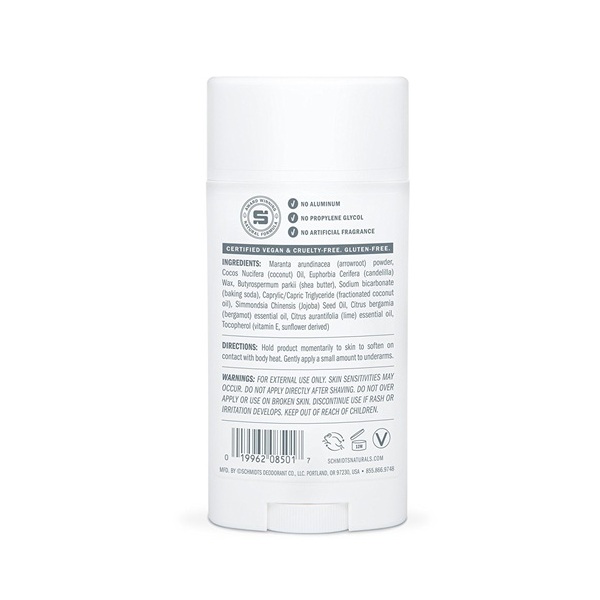 - Schmidt’s Natural Deodorant – Bergamot + Lime Stick (3.25 oz.; Odor Protection & Wetness Relief; Aluminum-Free)
