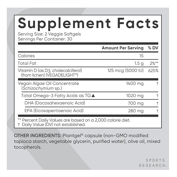 • PREMIUM QUALITY: Sports Research takes pride in offering products that use only the best ingredients available so that you can have total peace of mind in the supplements that you are taking. Our vitamin D3 and omega-3 nutritional supplements are verified non-GMO, certified vegan, and free of gluten and gelatin.