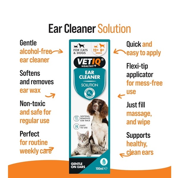 VETIQ Ear Cleaner Solution is a gentle ear cleaning solution designed to help sustain good pet ear hygiene. A soft flexible tube is provided for easy application and is gentle on your pet’s ears. Suitable for dogs, puppies, cats and kittens.