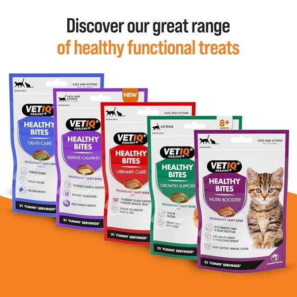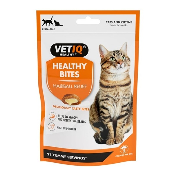 VETIQ Healthy Bites Hairball Relief treats for cats have been specially formulated to promote your cat’s well-being. Each treat is comprised of a delicious, crispy, cereal shell with a healthy cream-filled centre, packed full of essential nutrients, that not only help to prevent the formation, but also aids the removal of hairballs for our feline friends.