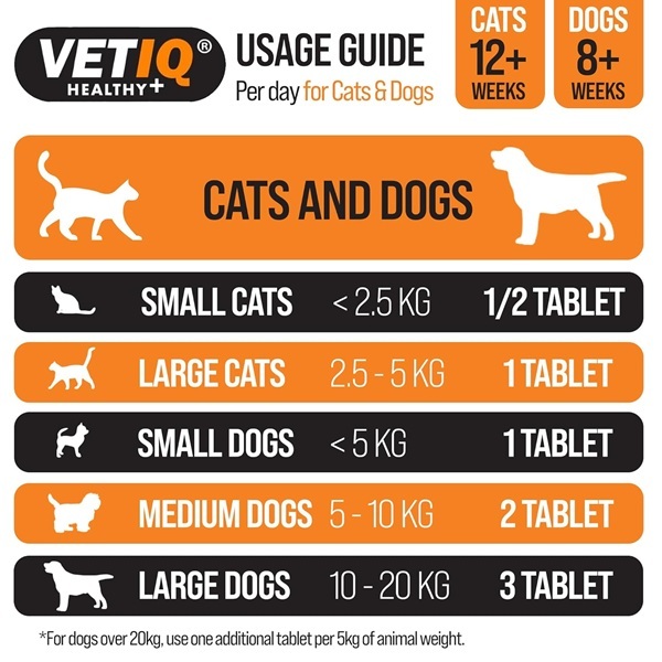 - Versatile Dosage: Easy-to-administer tablets that can be given whole or crushed over food, with specific dosing guide based on pet size
